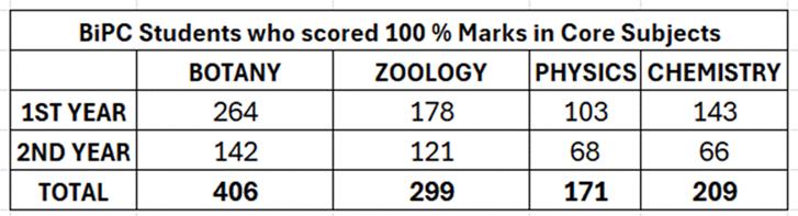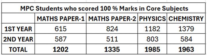 Students who score 100% Marks in Core Subjects.